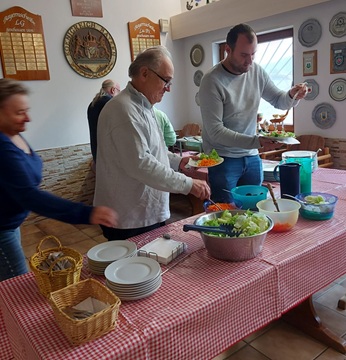 Zur Mittagszeit verwöhnten Jutta und Martin Zimmer alle Anwesenden mit einem liebevoll gestalteten Buffet bestehend aus Vor-, Haupt- und Nachspeise. Die kulinarische Versorgung ließ keine Wünsche offen und sorgte für beste Stimmung.