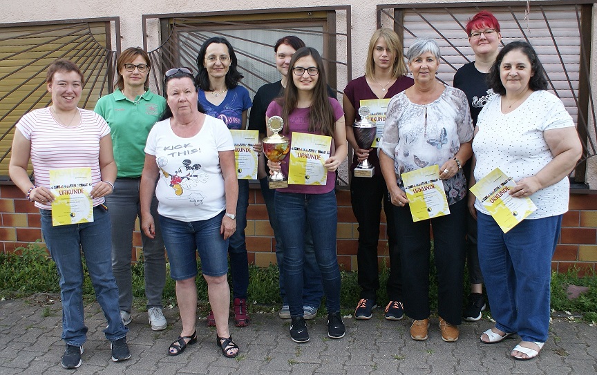 Wie es die Tradition verlangt, war der letzte Damenrundenkampf dieser Saison bei der Schützengilde Heidelberg angesetzt. Selbstverständlich war wieder die Tafel mit leckeren Salaten und reichlich Gegrilltem, der Meister am Grill war Fredy Hirscher, vorbereitet. Auch Petrus hatte ein Einsehen und ließ es ein klein wenig auf 28°C abkühlen. Trotzdem hielt sich die Erleichterung der LG-Damen in sehr engen Grenzen. Nachdem Steak und Bratwurst verschlugen waren, baten die Kreisdamenleiterin Jessica Hirscher und die ihr zur Seite stehende Vereinsdamenleiterin der Gilde Stephanie Schöder zur Siegerehrung. Die Nummer 1 in dieser LG-Runde war zugleich die Vorjahressiegerin Alisha Faßl von der SVgg Eppelheim mit 387,4 Ringen im Durchschnitt und einer Steigerung von 1,2 Ringen zu 2016. Knapp dahinter auf dem 2. Rang Stephanie Schöder von der SGi Heidelberg mit 385,8 Ringen im Ø. Wie im Vorjahr beanspruchte Cornelia Faßl von der SVgg Eppelheim den 3. Platz mit 360,2 Ringen im Ø für sich. Auf dem 4. Rang platzierte sich Jessica Hirscher SGi Heidelberg mit 358,7 Ringen im Ø, Platz 5 war für Franzisca Hirscher SGi Heidelberg mit 330,5 Ringen reserviert, den 6. Rang belegte Birgit Dietzow SVgg Eppelheim mit 325,5 Ringen im Ø. Allerdings konnte sie nur an vier RK-Tagen mitwirken. Bei der Disziplin LuPi bestimmte die Vorjahressiegerin Meike Winkler SVgg Eppelheim die Orientierungsergebnisse. Mit 364,5 (Vorj. 363,7 Rg.) Ringen im Ø gelang ihr wieder der Platz an der Sonne. Auf dem 2. Platz folgte Beate Hirscher SGi Heidelberg mit 352,0 Ringen im Ø. Rang 3 erkämpfte sich Katharina Hüllen SGi Heidelberg mit 341,7 Ringen im Ø. Den 4. Platz belegte Jutta Zimmer SGi Heidelberg mit 333,4 Ringen im Ø. Rang 5 war für Maria Rensch SGi Heidelberg mit 326,7 Ringen im Ø bestimmt. Maria Rensch konnte sich nur 3 RK-Tagen schießsportmäßig betätigen.  Zum Abschluss der Ehrung legte die KDL Jessica Hirscher ihre Hoffnung offen, dass in der neuen Runde vielleicht wieder mehr Damen an der Runde teilnehmen.               Bericht + Foto: HWB.